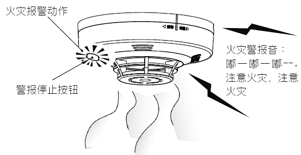備注:停止火災(zāi)警報(bào)音的過程中(約70秒內(nèi)),即使監(jiān)測(cè)到熱量也不會(huì)發(fā)生火災(zāi)警報(bào)。