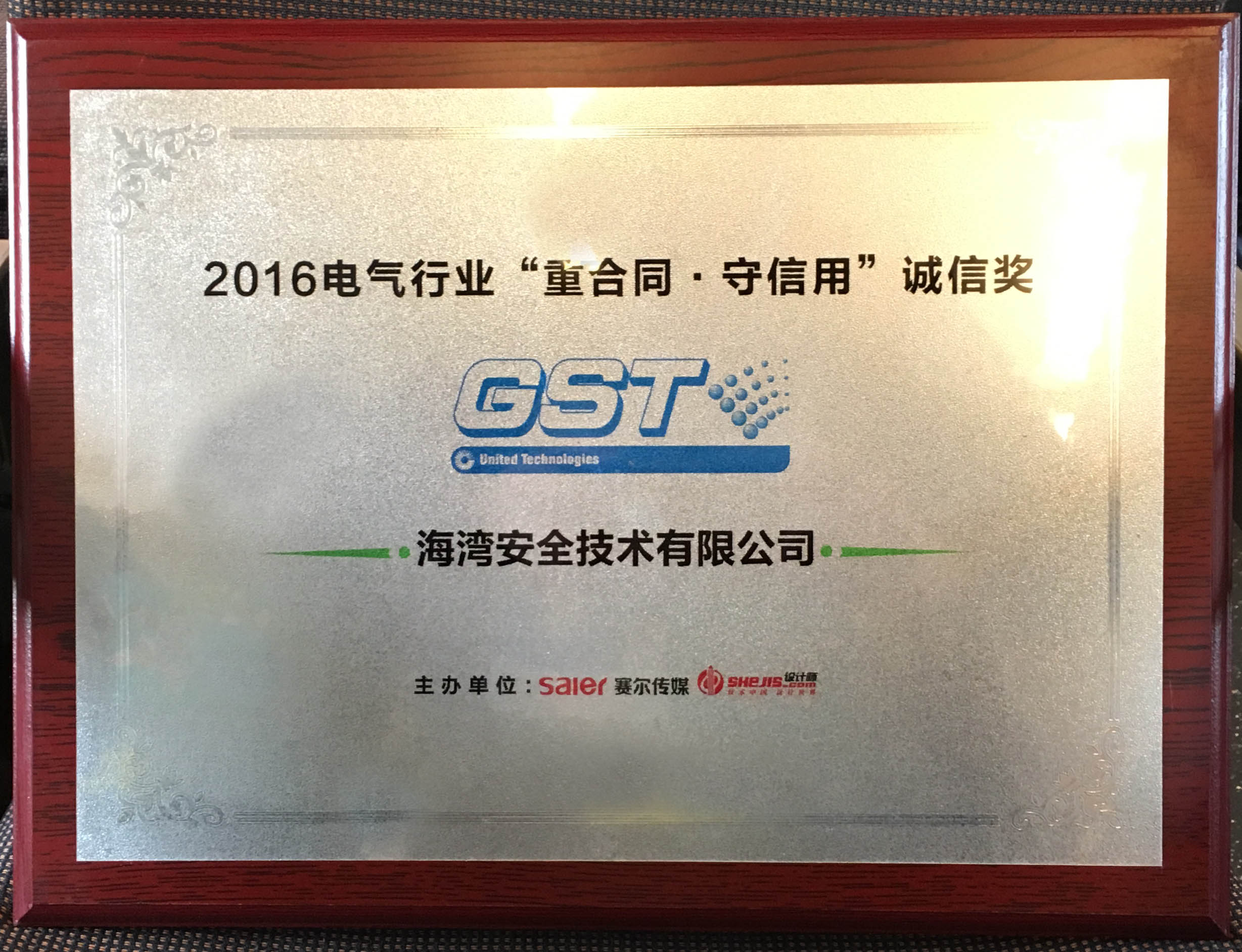 海灣消防榮獲2016電氣行業(yè)“重合同·守信用”誠信獎