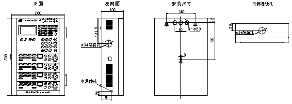 本控制器采取壁掛安裝,其底邊距地面高度不應(yīng)小于1.5m,后箱體有3個(gè)安裝孔,可用M8的金屬膨脹螺栓固定在墻壁上,固定應(yīng)牢固、端正,安裝在輕質(zhì)墻上時(shí)應(yīng)采取加固措施??拷T軸的側(cè)面距離不應(yīng)小于0.5m,正面操作距離不應(yīng)小于1.2m。