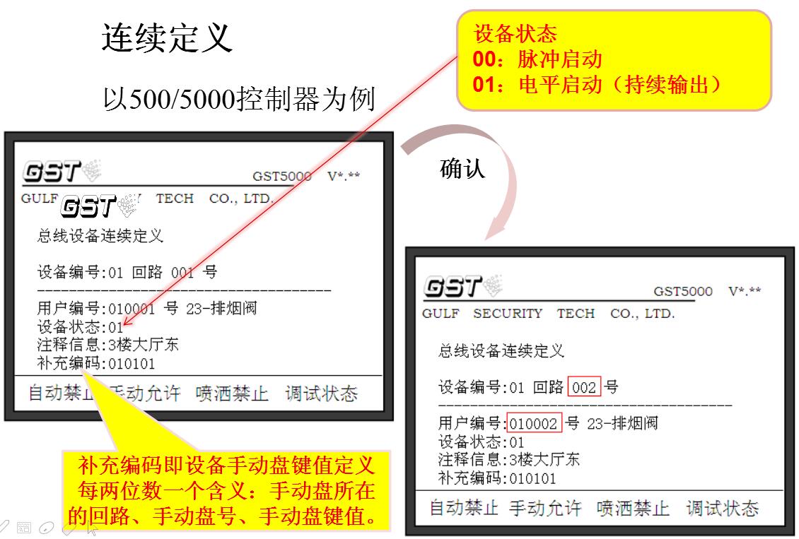 控制器所接的可編址外部設(shè)備均需進(jìn)行編碼設(shè)定,每個(gè)設(shè)備對(duì)應(yīng)一個(gè)原始編碼(一次碼,如下圖紅色數(shù)字)和一個(gè)用戶編碼(二次碼,如下圖藍(lán)色+綠色數(shù)字構(gòu)成完整的二次碼),設(shè)備定義就是對(duì)用戶編碼進(jìn)行設(shè)定。被定義的設(shè)備既可以是已經(jīng)注冊(cè)在控制器上的,也可以是未注冊(cè)在控制器上的。