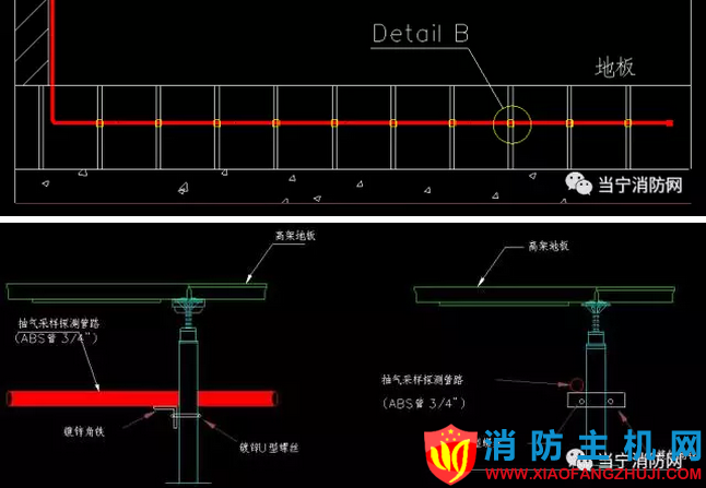 地板下采樣適用于高架地板下走線的空間探測,地板下由于相對密封,煙霧不容易察覺。將采樣管布置到地板下,可以有效探測該區(qū)域的煙霧異常。