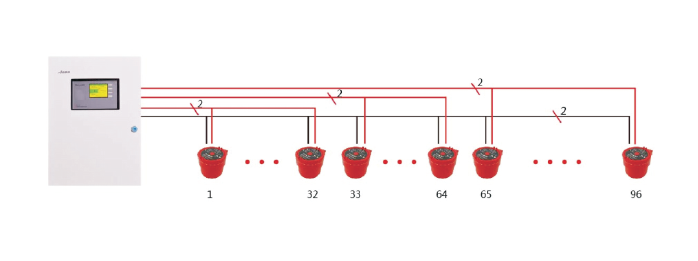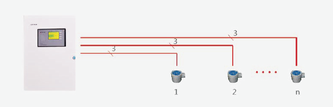 分線制系統(tǒng)(也稱多線制系統(tǒng))的每個檢測器與控制器之間有獨立的信號回路,所有檢測信號對于控制器是平行輸入的,這種方法又稱為點對點連接。分線制系統(tǒng)信號傳輸可靠,檢測器之間相對獨立,任何一個回路的運行都不受其他回路故障的影響,而且電源配置簡單,沒有嚴格的限制,單分線制系統(tǒng)布線較為復(fù)雜,特別在檢測器數(shù)量較多或檢測器與控制器間距較遠時,走線繁雜,安裝施工成本高,因此分線制系統(tǒng)適用于檢測器數(shù)量少,分布不集中,與控制器距離較近,且安全要求較高的場所。