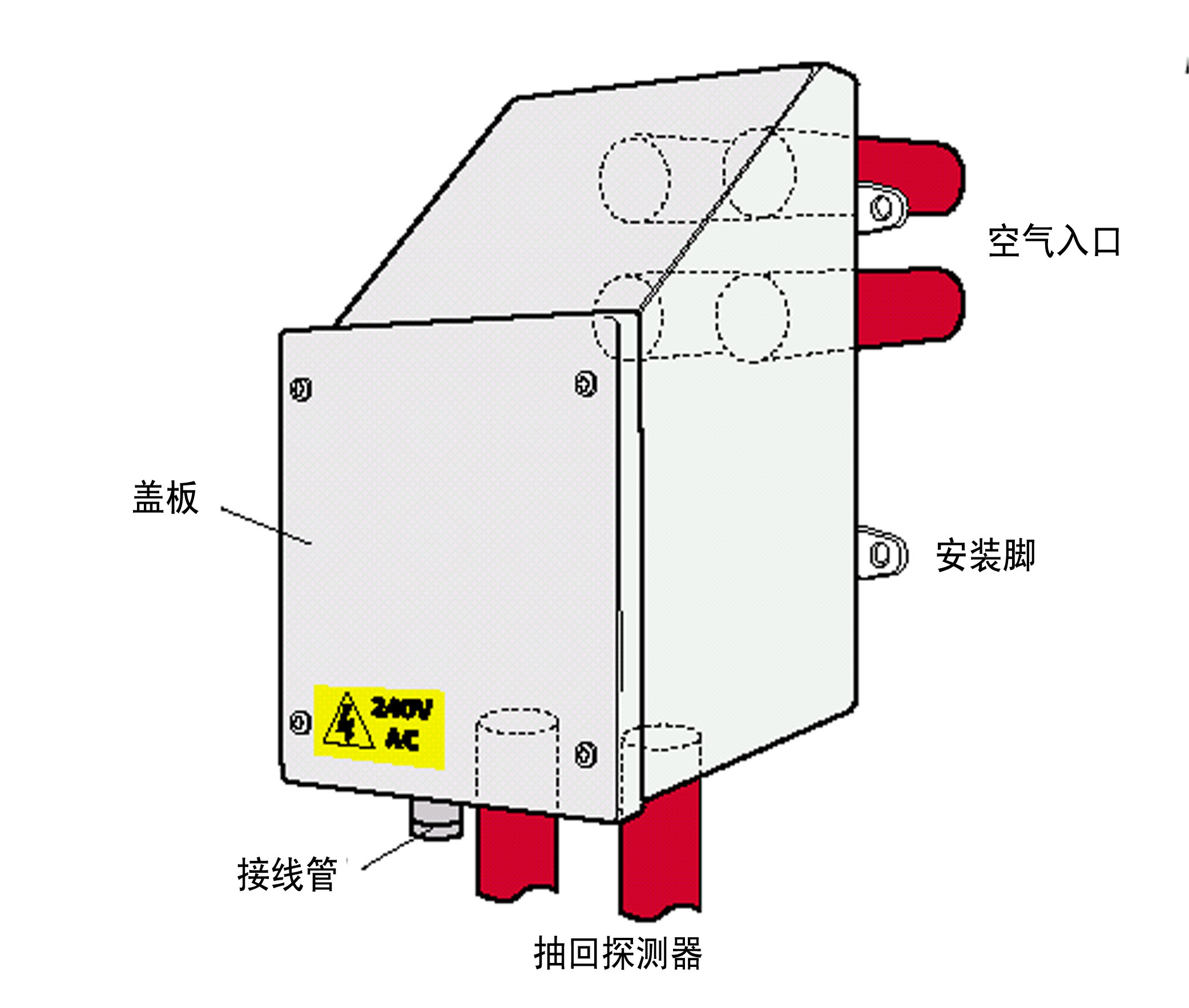 <!--[if !supportLists]-->§ <!--[endif]-->如果沒有維修空間,加熱器和GST空氣采樣式感煙火災(zāi)探測報警器都可以安裝在建筑物墻上的避免氣候影響的防護(hù)箱內(nèi)。