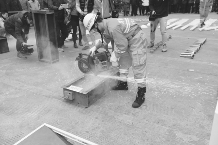 消防官兵用切割機(jī)現(xiàn)場銷毀不合格產(chǎn)品。