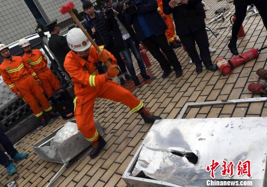 3月14日,福州集中銷毀500余件套假冒偽劣消防產(chǎn)品。 記者劉可耕 攝