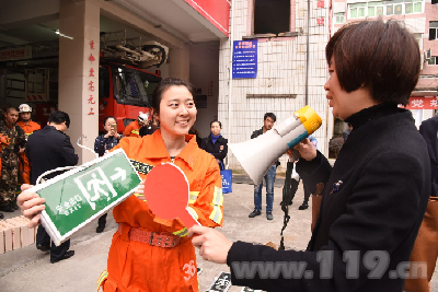 消防官兵與群眾進(jìn)行現(xiàn)場(chǎng)互動(dòng),拿出真假消防產(chǎn)品供群眾進(jìn)行辨別,參與人員手持紅、綠指示牌積極搶答,回答正確的群眾會(huì)得到一份消防部門(mén)提供的大禮包。