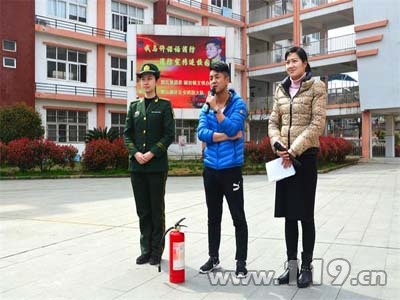 活動中,許諾和支隊“水花宣傳隊”隊員鄒忻辰針對中小學校的特點,講解了火災預防、火場逃生、如何正確報警和撲滅初期火災等消防知識,詳細分析了火災事故的嚴重危害性和巨大破壞性,并提醒中學生如果遇到火情,不得貪戀財物,不要恐慌,要及時的采取措施,并迅速撥打火警電話119,以免造成更嚴重的后果。